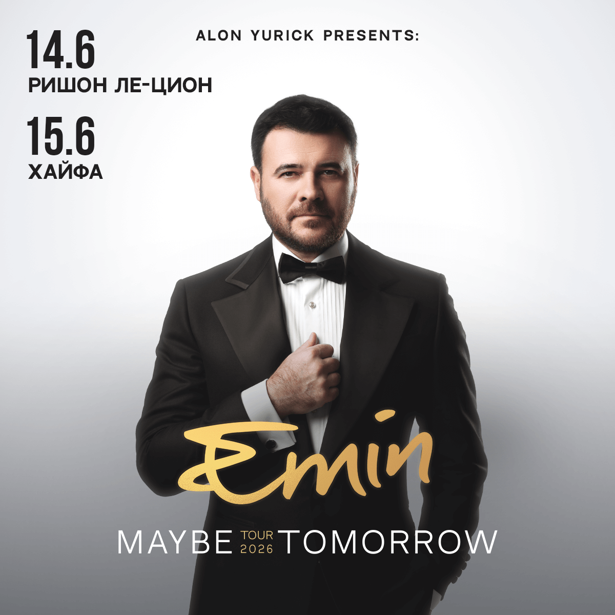 В июне 2026 года израильскую публику вновь ждет встреча с артистом, который умеет превращать концерт в откровенный разговор по душам. Многогранный и романтичный певец EMIN в рамках международного тура Maybe Tomorrow привезет в нашу страну новую программу, рожденную на стыке культур и музыкальных традиций – современную по звучанию и глубоко личную по настроению.