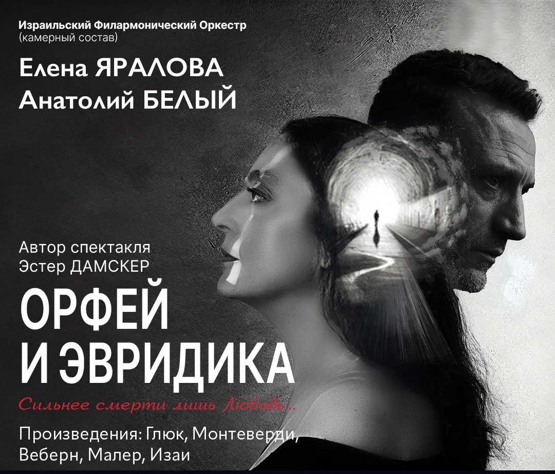 Спектакль «Орфей и Эвридика» – это сочетание классического сюжета мировой литературы, филигранно переработанный драматургом и режиссером Эстер Дамскер, живого музыкального исполнения от камерного состава ИФО, дополненный самыми современными технологиями. Ведь, помимо живых актеров, в спектакле задействован… искусственный интеллект! Венчает постановку великолепная игра одних из лучших русскоязычных артистов Израиля – Анатолия Белого и Елены Яраловой.